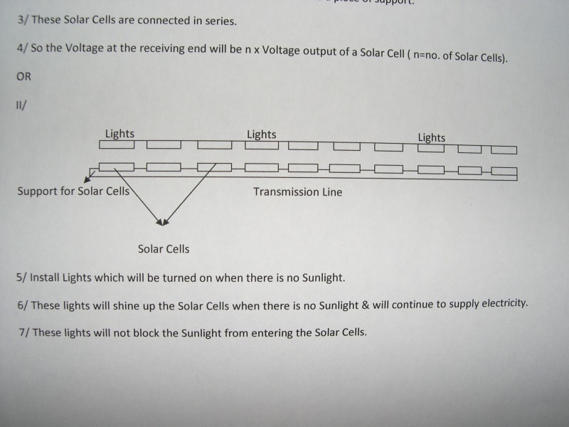 4/ So the Voltage at the receiving end will be n x Voltage output of a Solar Cell ( n=no. of Solar Cells).