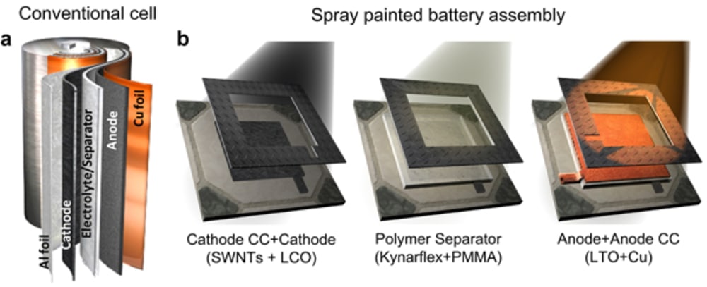 Researchers at Rice University have developed a lithium-ion battery that can be painted on virtually any surface. The rechargeable battery created in the lab of Rice materials scientist Pulickel Ajayan consists of spray-painted layers, each representing the components in a traditional battery. The research appears in Nature’s online, open-access journal Scientific Reports.”