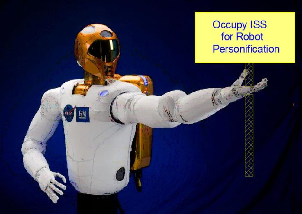 One easy way to jettison our old way of thinking, through perhaps a cheat, would be to incorporate a robot, thus giving it the limited level of personhood that corporations now enjoy. Perhaps we could start with the Robonaut, who is currently occupying the International Space Station (ISS), for robot personification (Figure 1).