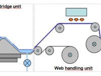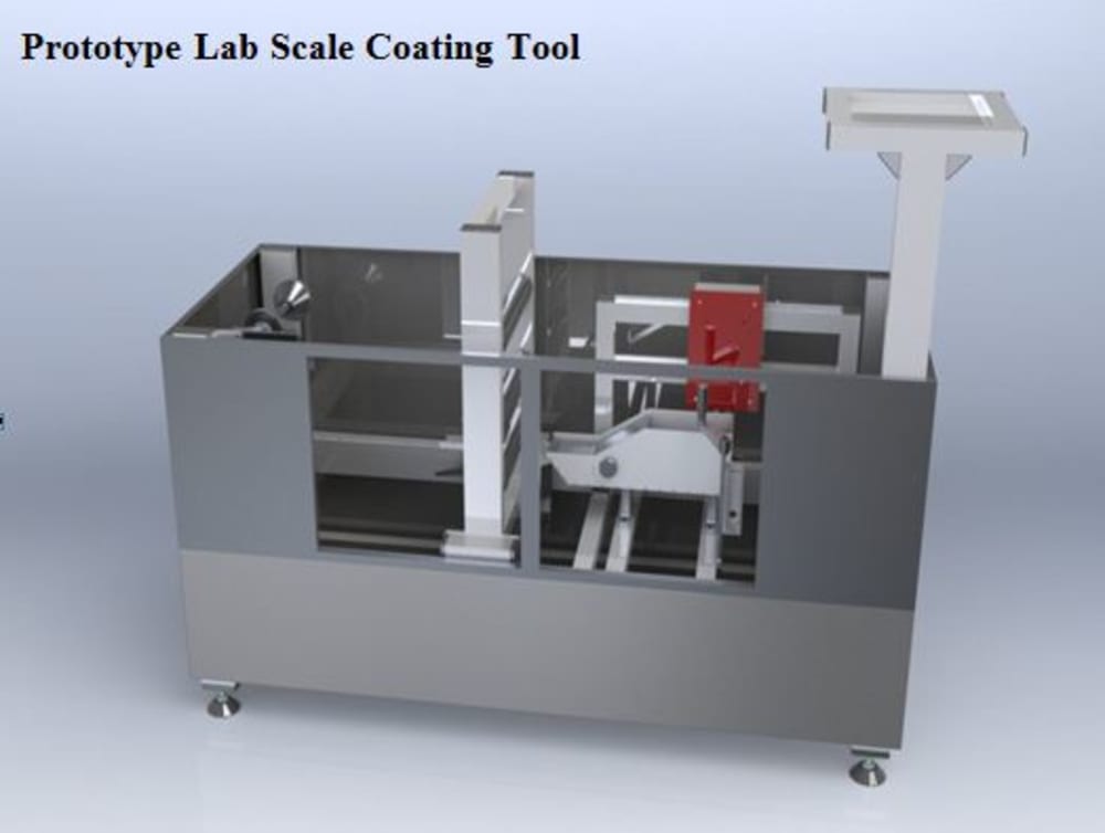 A prototype, lab scale tool with a 100 mm. web has been built and demonstrated, as illustrated. It can move at 0-5 cm/sec, controllable ± 0.1 mm/sec. A wide variety of materials can be deposited using this process, ranging from ultra-thin polymer thin films