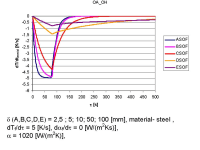 In cases with low thickness of equipment vessels, speed of temperature changes in construction material can get nearly the same speed of temperature change of the fluid, while at higher thicknesses these changes can be lower, as shown in fig. 2 and 3 for cooling conditions.