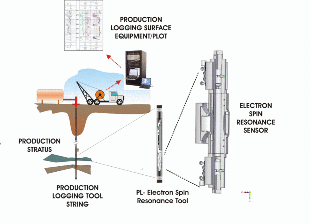 The Electron Spin Resonance chemical analysis technique measures the presence of unpaired electrons in materials by excited them through a magnetic field, the measure is made by registering the absorption of certain microwaves frequencies where the samples are located. The ESR is in use since time ago for the analysis of underground soils to determine it potential for crude oil production but this innovation not intended for exploration of new oil reserves but for what is called Production Logging. The sensor allows monitoring the quality of the crude produced layer by layer of soil. The PL-ESR probe register the content of certain unpaired electron material called –radicals- in the oil produced, and is able to determine what layers of production contain more or less of those contaminant substances.