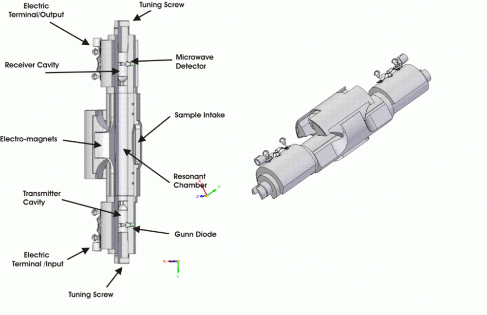 The design does not consider the complete tool, downhole or surface readout equipment or communications, the proposed sensor or probe needs to be adapted to each one of the existent tools of the potential customers. The design requires electronics for high temperatures and the complexity of the magnetic fields and microwave resonators will require using simulation tools and software, additionally, the conditions the sensor is intended to operate will require developing calibrations processes to compensate the effects of heat and pressure in the readings. Very high temperatures and very high pressures and quite reduced physical dimensions operation constitutes the main innovations for this design.
