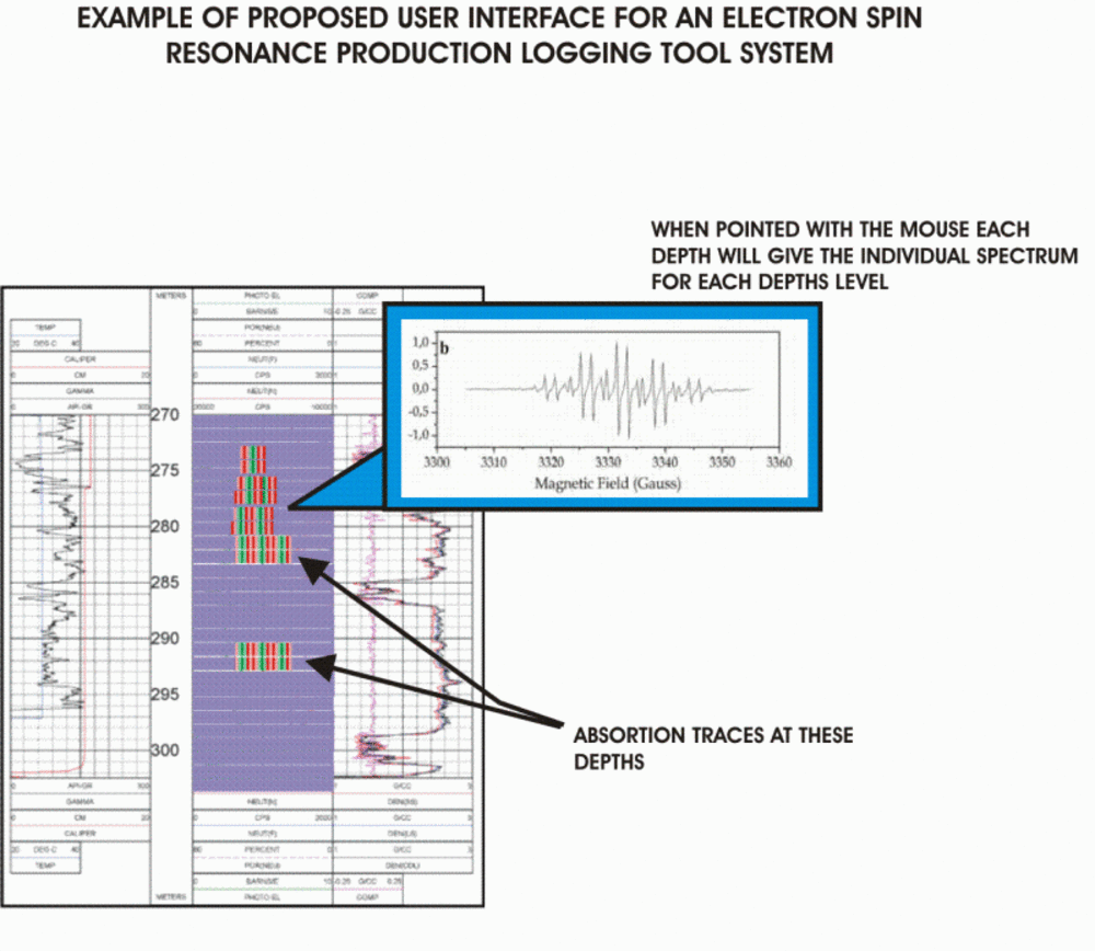 Monitoring the production of crude in this way ensures the proportion or level of contaminants corresponds to the industrial process the crude is intended for and allows determining what depths along the well add more or less contaminants to the final mix reaching the surface and in what proportion those contaminants are added. Analyzing the crude production by ESR would be important in the countries where concessions for crude production are granted by depths or geologic layers providing records of the quality of each one the layers. Analyzing ESR data can be a complex task and some customers maybe specialized corporations which interpret geophysical data. The Production Logging ESR opens a wide field of development by the use of the ESR technology to provide corporations, governments, producers, and environmental agencies data about the amounts of contaminants in the production of crude and allows them to decide, tax, invoice or penalize the quality of the production of crude in real time.