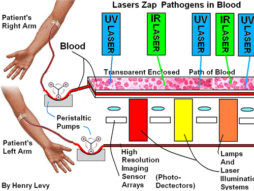 Pathogenic micro-organisms in blood detected by an optical image recognition system are located, identified, and selectively targeted by a computer which aims focused laser beams at them to kill or neutralize them. This invention will kill all recognized microorganisms, abnormal cells, and viruses in blood.