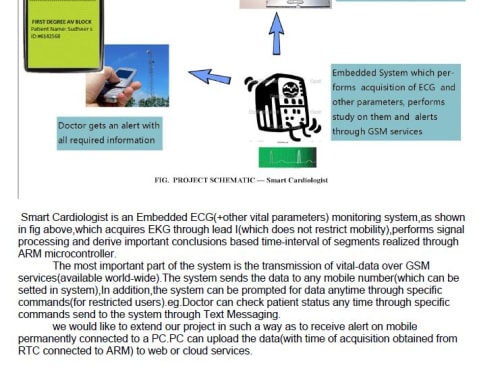 Smart cardiologist is an embedded system that performs acquisition of EKG and temperature, real-time signal processing on ECG, draws many important conclusions out of it, and then uploads the final data to GSM services and cloud services (optional).