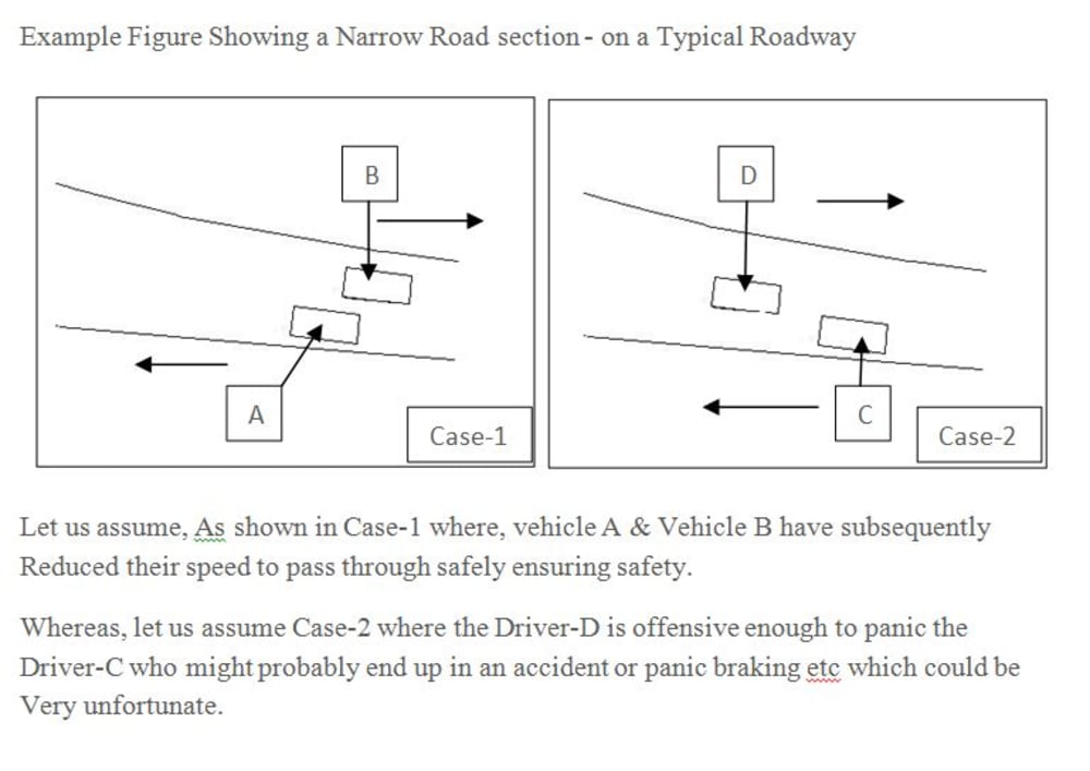 The Speed & steering input given by the vehicle towards another approaching vehicle can be measured as a criteria for measurement.