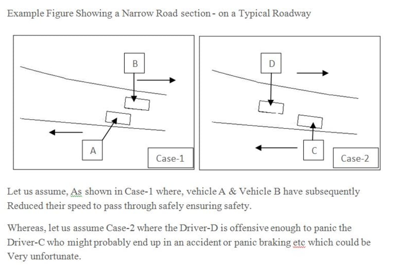 The system monitors the distance at which the driver, changes lane when a forward vehicle is in motion. The system monitors the distance at which the driver can pullover & changes lane when an upcoming vehicle. other parameters such as vehicle speed, signaling, etc. are also monitored