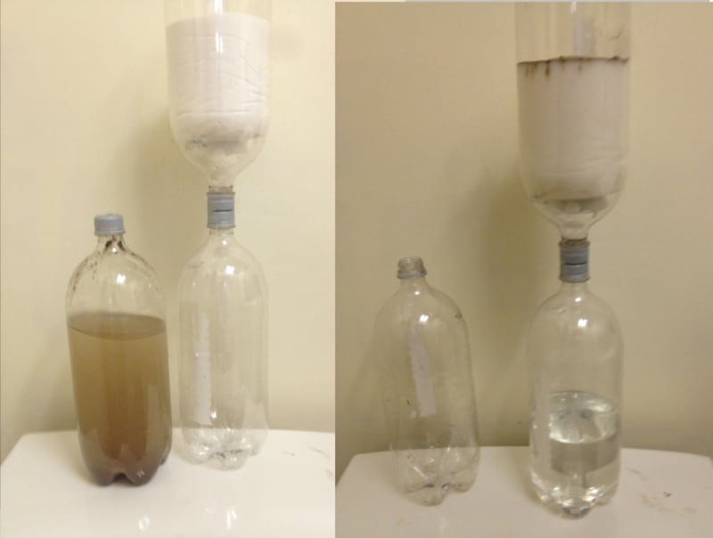 This incredibly simple system effectively filters the water and removes any sediment or particulate matter that could lead to health issues. To improve this design and make the water even safer to drink, we suggest a chemical treatment either be applied to the rolls of toilet paper or be distributed in the form of tablets. Applying the treatment directly to the paper would be the optimum solution. An additional improvement could be achieved by challenging filter companies to develop a cheap and effective filter that works more effectively than the toilet paper, yet still fits within the 2 liter bottle. Regardless of whether or not these improvements are implemented, we feel this simple solution could make a significant impact on water quality in struggling communities around the world. We hope you see the potential in this idea and help us spread it to those who need it most.