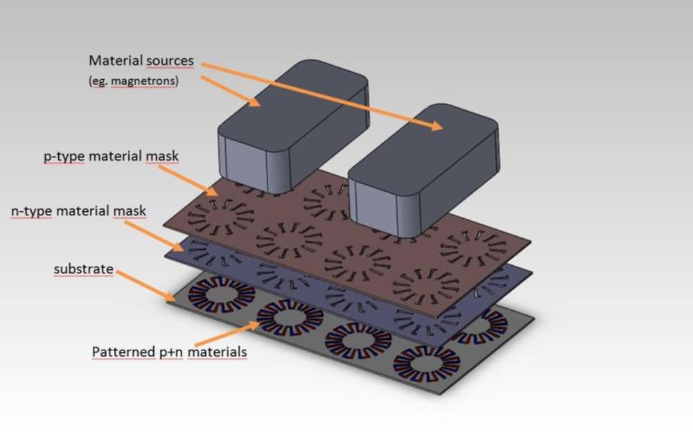 My proposal is to use vacuum deposition techniques and direct patterning in the production of thin film thermoelectric devices.