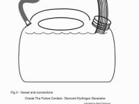 A vessel to contain the water and electrodes is required, of a size and shape to be located in the engine space. For a home-built system, this might be a gallon gasoline can. Wires pass through the pour opening. Hydrogen delivery hose attaches at the vacuum relief nipple. A commercial version might specify a more robust canister and a miniaturized fender washer assembly that can be reconditioned in an ultrasound jewelry cleaner.