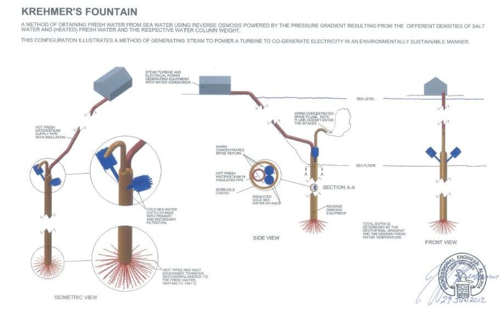 Geothermal energy is available everywhere on Earth, if one digs deep enough. The combination of fresh water and energy production could make these projects more attractive.