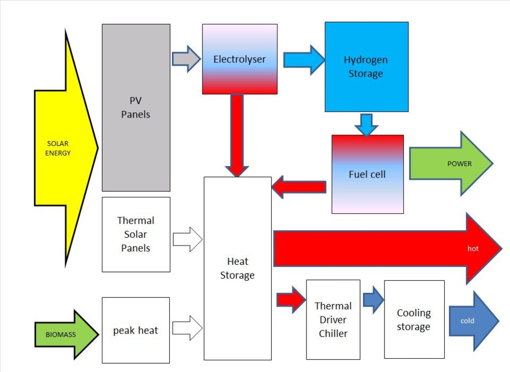 The specific objective of the project is to achieve an electricity, heat and cold residential generation system (mCCHP) off-grid type, powered by renewable energy