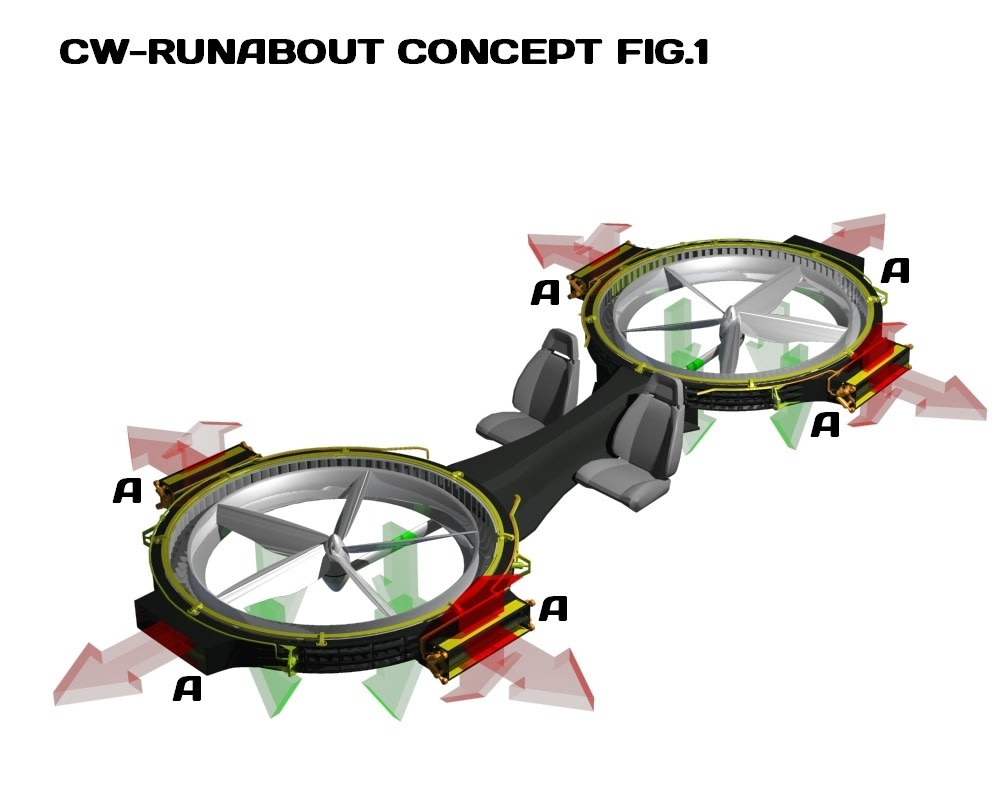Using a single engine to provide both thrust and directional control with an innovative double set blade system, coupled with a unique ducting system, the CW-RUNABOUT will hope fully prove to be a fun and easy way to travel.