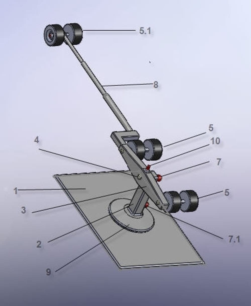 8. Telescopic pole - an expandable device combined with a pulley 5.2 to adjust a belt tension.
