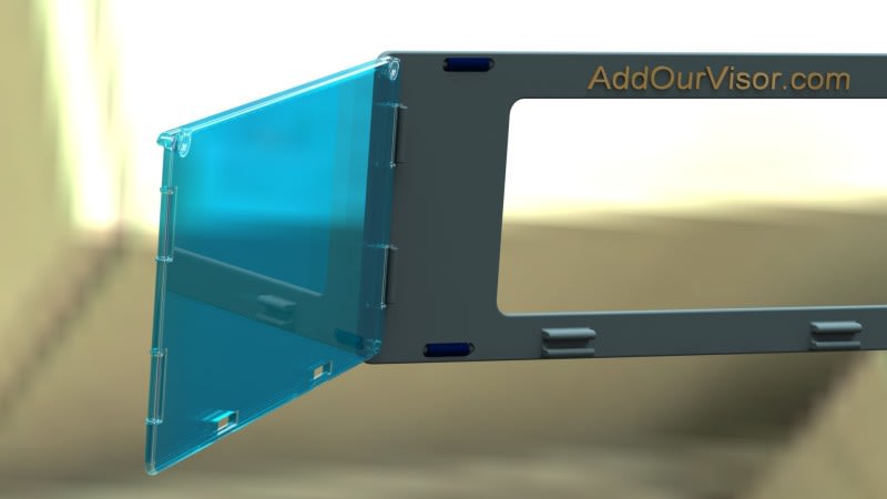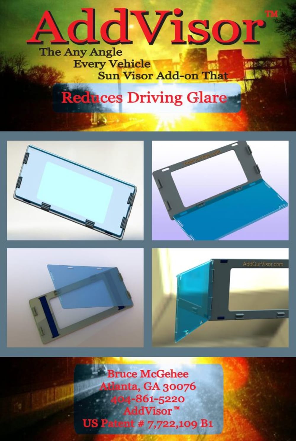 The AddVisor™ uses patented technology to allow vehicle occupants to protect their eyes from blinding sunlight and other glare even when the source of that glare falls outside the limitations of their vehicle’s built-in sun visor.