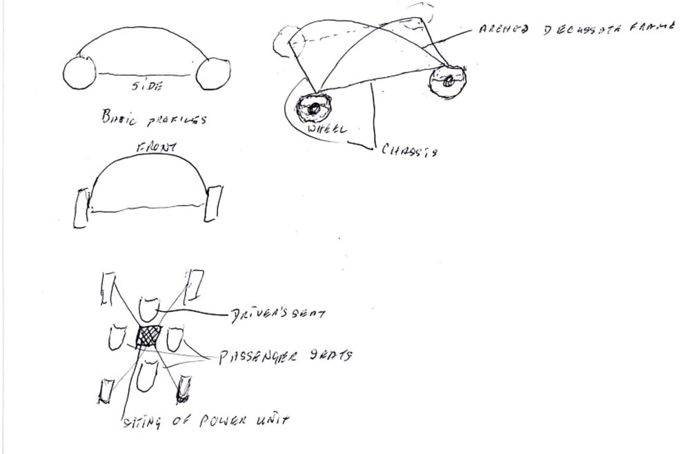Based upon an arched decussate (shaped like an X) form from which the chassis is suspended, this is a motor vehicle in which all components are sprung members. This enables a flexible and extremely light-weight bed upon which to mount a propulsive system. As part of the design, passenger loading will never impart uneven stresses upon the vehicle. Furthermore, depending upon the power unit, the vehicle can be lifted by the end to facilitate parking. The proposed model employs either a ceramic replaceable power unit burning fossil fuel, or an electric or hybrid power supply. The advantage of the extreme lightness is such that a 100 cc motorcycle engine is adequate to drive it, even with two up.
