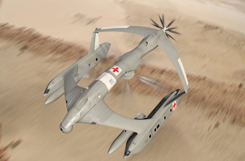 The Vanquish is a scalable unmanned aerial vehicle, designed to transport personnel, wounded personnel and equipment and can perform surveillance and scout/attack missions. Though the vehicle was primarily designed for the Military, it has many civilian uses, especially in areas of medical evacuation and emergency supplies delivery in remote and dangerous areas.