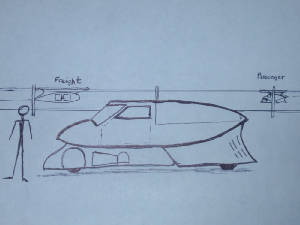 Drive under the entrance ramp to the local network, which accelerates the vehicle to 40 or 50 mph, and merges into the computer-controlled traffic. Enter your destination into the computer, and relax. The ramp from the local rail, to the highway accelerates the vehicle to 300 mph.