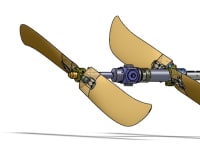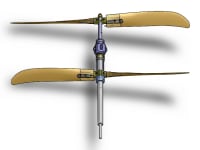 In order to integrate and gear the 2 stage counter spinning propellers together, Linn designed a symmetrical on axis micro gearbox to gear the twin counter propeller together.