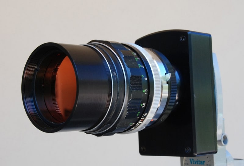 Isolation of a band of UV wavelengths shorter than ~400 nm from longer wavelength energy present in the background environment is a challenging problem. Digital CMOS and CCD array detectors respond to the undesired long wavelength energy with many times higher sensitivity to energy in the UV region below ~400 nm. Insufficient rejection of long wavelength energy dilutes and often obscures the desired UV signal. The traditional solution is to use expensive complicated filters that are generally composed of many individual elements that are required in combination to provide high levels of out-of-band rejection at various parts of the long wavelength spectral range. Additional solutions require special focal plane sensors that have reduced long wave response; such sensors are very expensive. Our camera system uses common monochrome arrays coupled with our less expensive UV filters. Economics limits currently available filter sizes to ~50 mm diameter and thereby restricts the use of existing filters to common optics having comparable apertures.