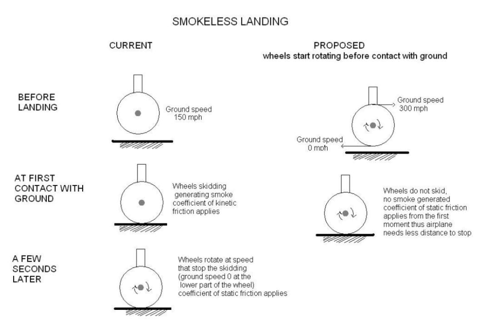 The basic idea is upon landing to start the rotation of the airplane wheels before contact with the ground.