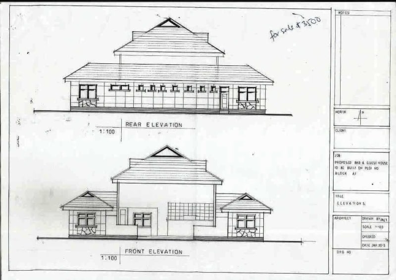 You may use this house as the hotel,restaurant and/or hostel. It is beautiful in shape for the clients and for those who want to use it as a boarding place. I like it that is why my company Pro Audio Light Tanzania has designed it for our clients it is made of about 3,500 Cement blocks of about 6"x9" x 18"(1000 cement blocks) plus 5"x9" x 18" (2,500 cement blocks) the wall is 8" including plaster. We are selling at the price of $3,500 for those who are in need of it. We can ship to you the originals of blue prints and/or drawn on tracing papers.