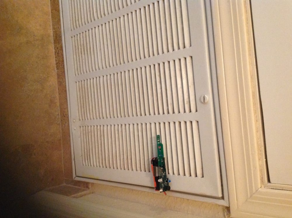 The device mounts directly on a return vent but under conditions the user may choose to mount it on an output vent.