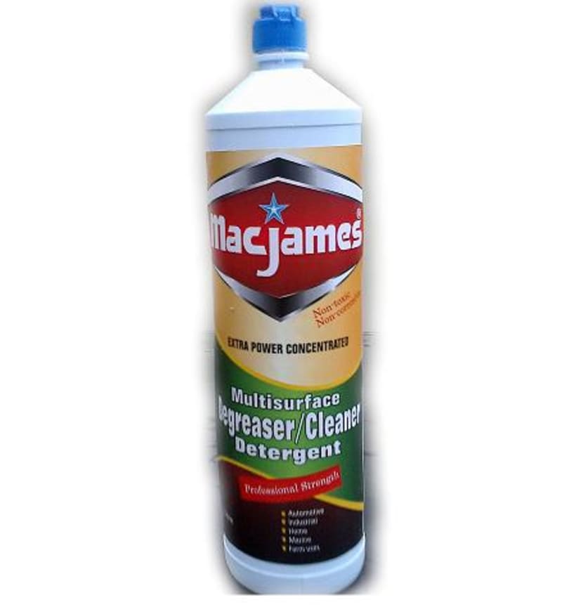 Macjames Multisurface degreaser/cleaner is produced using simple, cost-effective but effective environmentally friendly chemical ingredients,like Sodium lauryl Sulphate, Hypochlorite-5%, deodocylbenzene sulphonic acid,S odium Hydroxide, among others.