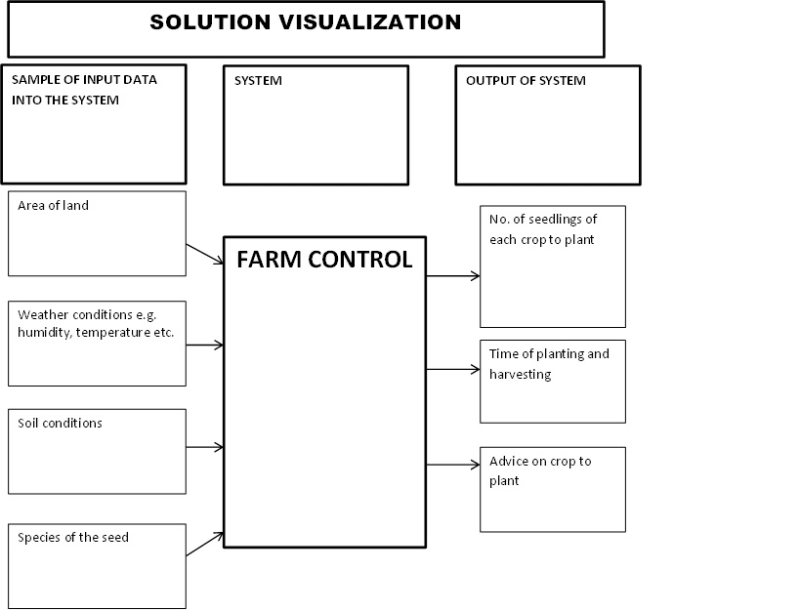 The solution being able to forecast weather conditions (it will be hooked to a meteorological system) will inform the farmer on impending weather conditions and actions to take to make the best use of the upcoming weather, this will also help to advise the farmer on the timing of his crop rotation so as to obtain optimal results.