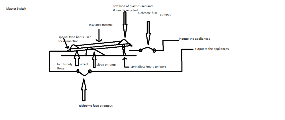MASTER SWITCH -- the name itself refers that it's an advanced switch, when we compare to normal switches. In any switches do they provide fuse contact , NO ,the manufacturer of switch board always gives us common fuse ,but that type of fuse will be blown off when some surge current flows. The common fuse type will stop the current when fuse is blown off and its the disadvantage because the electrical appliances are connected to the board, it will not work without current, so we designed the switch contact with fuse at input and output.