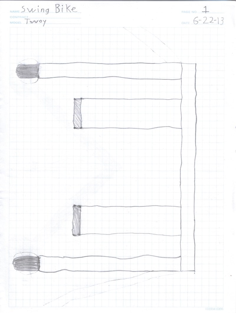 The swing bike is an entertaining mix of a typical playground swing and a bicycle. Pictured is the preferred two-person model. The swinging motion is transferred to the wheels in proportion to the control of one of the operators. Steering is also under the control of an operator, perhaps the same or the other. Braking is also controlled in a similar manner, and all of these are hand-operated controls. While the concept seems novel, the basics of control should be simple enough for a bicycle company to implement.