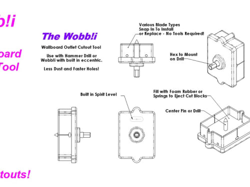 Introducing the Wobbli - Hand Drill Powered Wallboard Outlet Cutout Tool - Needs Just Seconds to Cut an Exact Hole to Make Quick Work of Your Projects - Faster and Less Dust than any other method!