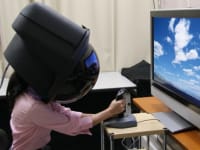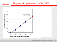 Table.1 shows the performances of the developed monocular HDP. The most important feature is to adopt very wide viewing screen of 160 degrees and very small dome screen of 40 cm on diameter and very short visual distance of 25 cm. By increasing the visual field of view, the hyper-reality effect of dome shaped screen was 0.5 points higher than that of the conventional HDP and 2 points higher than that of flat panel displays, as shown in Fig.3. In addition, despite the short visual distance, we cannot see the screen surface by observing the screen with only one eye and as a result, the hyper-reality score was improved to 0.5 to 1.2 points more than the conventional binocular HDP, as shown in Fig.4.