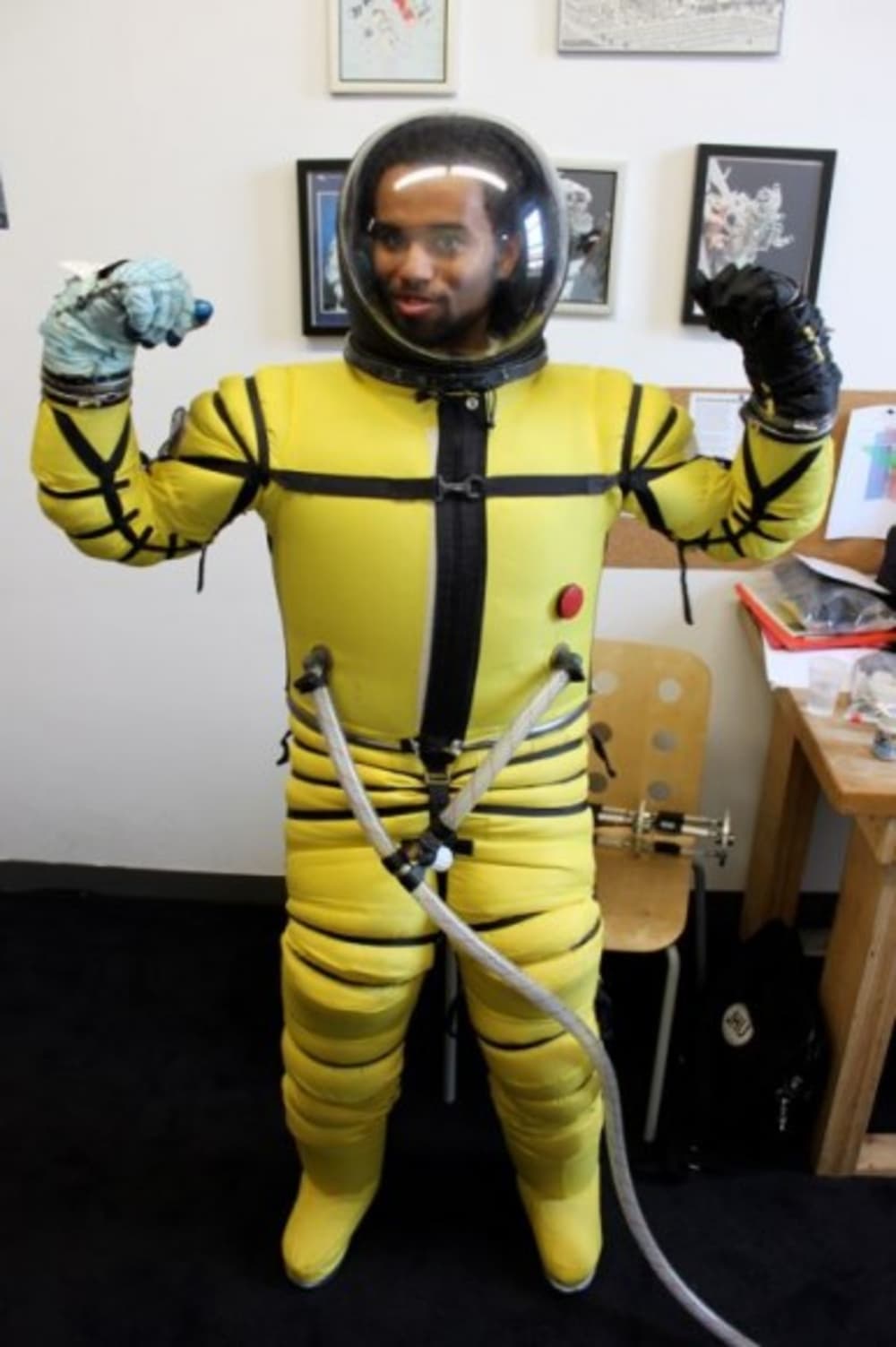 i. A customized version of Final Frontier Design’s low-cost Intra-Vehicular Activity IVA 3G spacesuit, which was designed by a 20-year NASA veteran. It makes use of Aerogel’s lightweight and Space Shuttle-like flexible insulation blankets to form a protective thermal layer. The suit system can be turned on and off, control built-in suit and light systems, maintain radio contact with ground control, and utilize its trajectory data systems.