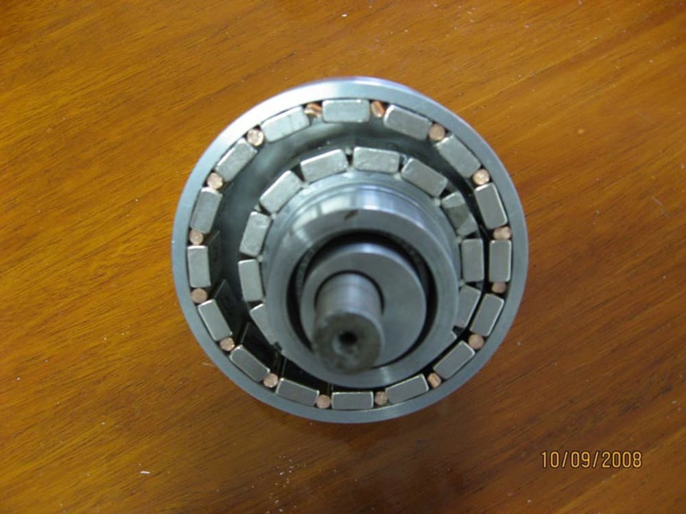 The photo attached shows part of one prototype using permanent magnets (19 X 12,6 X 6,3 mm of NdFeBr) where there are 14 magnets in the internal pole ring with orbital and rotational motion and 16 magnets in the external fixed ring ( external housing diameter is 100 mm ) with the torque transmission about 13,6 Nm between the magnet rings.