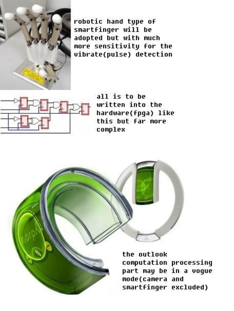 As it is shown in the pictures that the Medibot has a smartfinger to sense the pulse status, and high resolution digital camera to snapshot the tongue’s shape and color etc. then transmit to its main calculation FPGA-circuits board which is embedded with trained ANFIS, the system will then automatically output the diagnosed result including the symptoms and remedies etc.