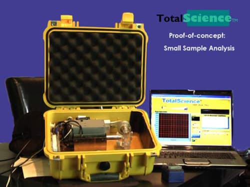 * A small-scale sample analyzer, in a portable package. Can possess much of the functionality of an analytical laboratory – yet requires little-to-no training. Has a simple interface and the portability of a laptop, tablet (e.g. "iPad"), smart phone or other wireless "smart" mobile device.