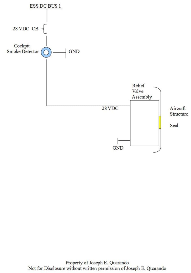 When smoke is detected by a smoke detector, similar to those located in the lavatories, and now located in the cockpit, power is applied to the Relief Valve Assembly/solenoid which opens a pathway to the outside atmosphere. As the cockpit is pressurized as well as the passenger compartment, the smoke in the cockpit will be pushed out into the atmosphere. This, along with the air flow over the surface of the fuselage, will aid in creating a vacuum and further draw smoke out of the cockpit. Once the smoke clears and the detector is reset, the Relief Valve Assembly/solenoid will close, sealing the opening in the cockpit allowing pressurization to resume.