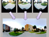 Panoramic photography is a well-known technique, used by photographers who want to take pictures with a huge field of view. The maximum field of view is represented by a sphere. There are a lot of pc-based (and phone-based also) software that allows the user to load single images and combine them in a static panoramic view: in Figure 1 you can see three circular fisheye images combined into an equirectangular view, covering a field of view of 360°x180°. Furthermore does exist software that allow us navigate in a spherical panorama just moving the mouse over the image (let’s think about Google Streetview for example). There even are also very few software that allows us to create and navigate full spherical videos.