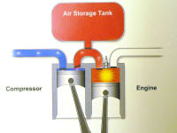 A Compressed-air engine is a pneumatic actuator that creates useful work by expanding compressed air. A compressed-air vehicle is powered by an air engine, using compressed air, which is stored in a tank. Instead of mixing fuel with air and burning it in the engine to drive pistons with hot expanding gases,compressed air vehicles (CAV) use the expansion of compressed air to drive their pistons.They have existed in many forms over the past two centuries, ranging in size from hand held turbines up to several hundred horsepower. For example, the first mechanically-powered submarine, the 1863 Plongeur, used a compressed air engine.