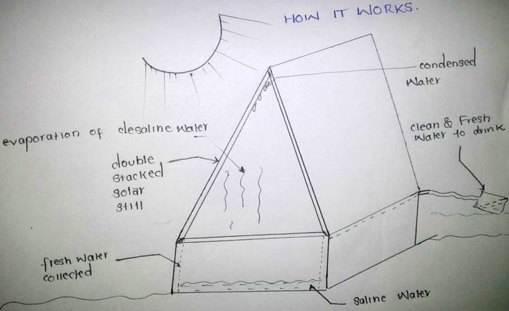 Scope of the design: To purify saline water by utilising double stacked solar panels lessening time for water purification, this design can be used in oceanic regions and focuses on making fresh water available the world population easily in an unconventional manner.