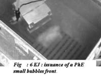 The poor performance of today's thermic engines is due to the temperature inhomogeneity of the hot air. With today fuel injection, it’s difficult to obtain a uniform and stoichiometric air/fuel mixture in the combustion chamber, in the extremely short deadlines (the order of ms), while the volume ratio air/vaporized fuel volume is in the order of 100. In these motors, the temperature profile is a paraboloid of revolution ( Fig 1); the air temperature is at its maximum, near the point of injection; then because of jet dispersion, it decreases stepwise from 1300 ° C to 170 ° C. But ideally, the temperature should be uniform at 1000 ° C. Calculating (cold source at 85 ° C) the thermodynamic average output, we find 36% in today injection and 72% in ideal injection. Double! The Phase Explosion (PhE) which is a dramatic increase in nucleation frequency portrays the catastrophic change of any metastable liquid to vapour.