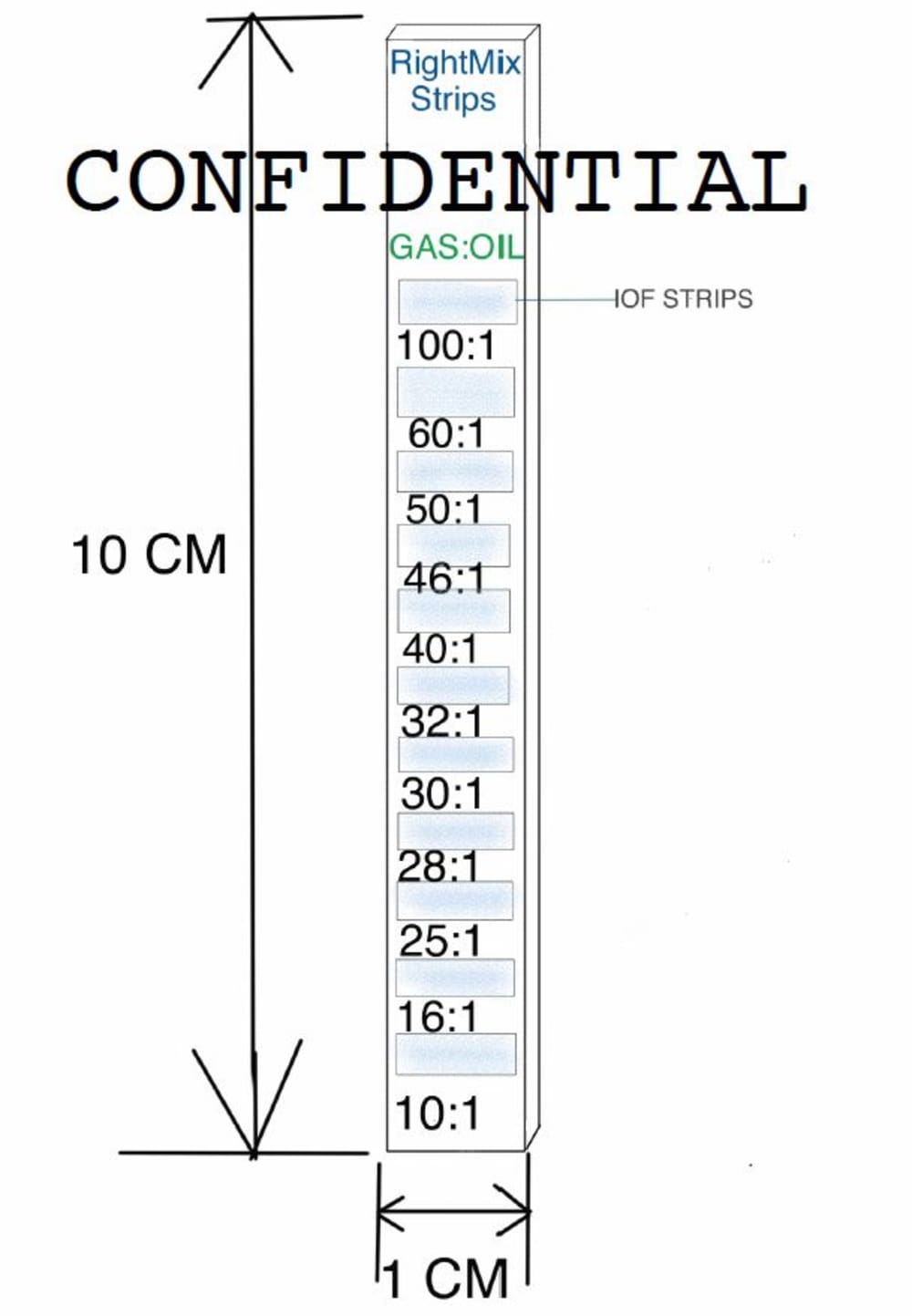 The “Fullspeed RightMix System”, which is a unique process utilizing the RightMix Strips, allows you to identify an unknown oil/fuel mixture and easily re-mix it to a specific mixture oil/fuel ratio for an entirely different purpose, without doing any math.