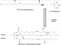To conclude, the proposed route, mainly from castor oil biodiesel, was viable and presented higher yield and selectivity than the chemical catalysis, producing biolubricants for some applications, such as hydraulic fluids and boat engines. The most attractive raw material was castor biodiesel together with lipase Lipomod 34P. And all the methyl esters produced molecules with interesting lubricant properties.