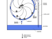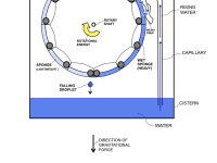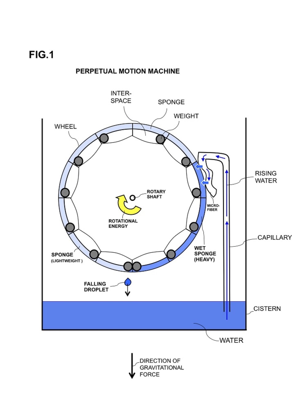 The Water, which fell into the Cistern from the Sponge, is uplifted by the Capillary again. Uplifted Water is applied to the Sponge again. Thus, the Wheel continues to rotate.