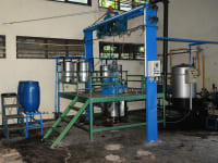 The reactor is a jacketed reactor with 120L volume, made of stainless steel ss 304 and 5mm thickness. It is equipped with a single stirrer blade. Jacket that is filled with thermal oil heaters, blanketed the reactor with 50mm thickness from the walls of the reactor, fiber-ceramic is also used as an insulator. Height of the reactor is 660mm from the bottom of the reactor which is shaped earthenware. It also is equipped with control glass, pressure gauge, safety valve, thermometer, and a solenoid valve, which is connected with a thermometer to control the temperature.