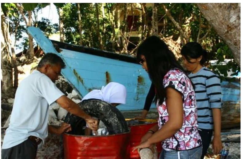 The tsunami that struck Aceh-Indonesia in 2004 has caused most damage to coral reefs. Conservation is a way to prevent more severe damage to coral reefs. Mouring bouy installation is one method to conserve coral reefs, in an effort to prevent damage to coral reefs from fishermen activity. A total of 42 pieces of concrete have been successfully made by our team in Weh Island- Aceh Indonesia.
