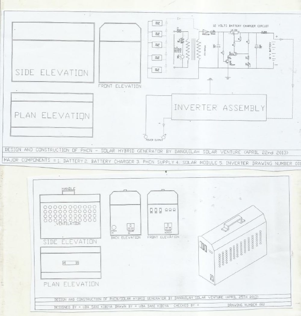 The generator is initiated by a solar and/or PHCN charge to the battery which then operates the inverter to produce alternating current electricity.This will reduce over dependence on PHCN and petroleum fuels extend electricity utilization period and also help create and sustain green environment. It is important to note that, the generator must not be used to to charge itself.
