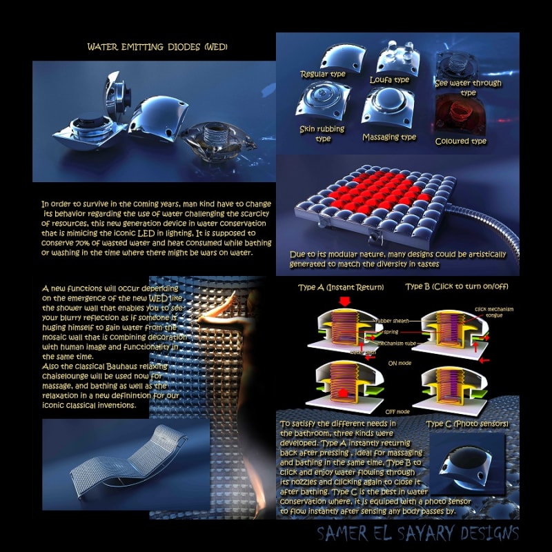 In order to survive in the coming years, mankind will have to change its behavior regarding the use of water challenging the scarcity of resources. This new generation device in water conservation that is mimicking the iconic LED in lighting. It is supposed to conserve 70% of wasted water and heat consumed while bathing or washing in the time where there might be wars on water.